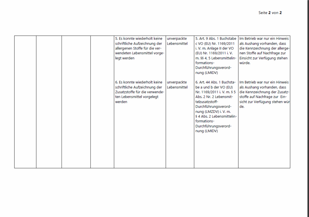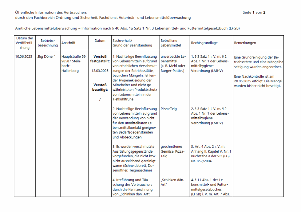 Informationen über Verstöße i. S. v. § 40 Abs. 1a LFGB